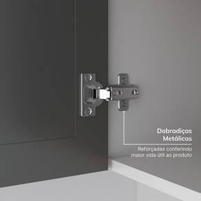 Informações Complementares: Porta de bater almofadada/moldurada em MDF 4mm, dobradiças de 35mm, prateleira interna, puxador retrô em alumínio.