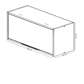 Características: Estrutura em MDF 1 porta basculante Pistão a gás Acabamento fosco texturizado Impressão com secagem UV Fitas de borda em PVC