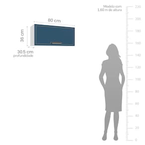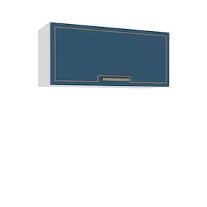Armário Aéreo 1 porta basculante Amara Branco Azul Politorno Móveis - Branco | Azul
