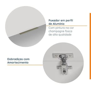 O Armário Aéreo Porta Basculante 90cm Ipanema é um móvel de alta qualidade, com um design moderno e funcional. O fato de ser fabricado com material de qualidade, como o MDP com acabamento em BP, garante durabilidade e resistência contra umidade, além de facilitar a limpeza do móvel. As dobradiças e o pistão a gás com sistema “soft close” proporcionam um fechamento suave e silencioso das portas, sendo características que tornam o móvel mais elegante e moderno, agregando valor ao ambiente. O Armário Aéreo Porta Basculante é uma ótima opção para quem busca um móvel prático e funcional para sua casa. Acabamento da Porta: BP Ambiente Principal: Cozinha Complexidade da Montagem: Média: pode ser montado por mais de uma pessoa e/ou necessite de maior conhecimento para montagem Cor: Branco Cor do Produto: Branco Cor Interna: Branco Escala de Brilho: Fosco Escala de Brilho da Porta: Fosco Itens Inclusos: 01 Armário Aéreo, Manual de Montagem, Kit Ferragens Linha ou Coleção: Ipanema Manual de Montagem e Instalação: https://cdn2.madeiramadeira.com.br/prd/completa-moveis/1300355-IPN03B-ManualdeMontagem.pdf Material da Dobradiça/Corrediça da Porta: Metálica Material da Porta: MDP Material do Puxador da Porta: Alumínio Material Principal: MDP Montagem Flex: Não Necessita Montagem: Sim Origem do Produto: Nacional Peso: 13,15 kg Possui Espelho: Não Possui Possui Pés: Não Possui Portas: 01 Possui Prateleiras: Não Recomendações de Uso, Manutenção e Limpeza: Use um pano levemente umedecido com água, seguido de pano seco. Não utilize produtos químicos ou abrasivos. Sapatas Niveladoras: Sim Sistema de Montagem: Sistema de montagem via cavilhas, parafusos, minifix e pregos. Suporta Até (kg): 5 kg Tipo de Dobradiça/Corrediça da Porta: Soft close Tipo de Porta: Basculante Tipo de Puxador da Porta: Externo