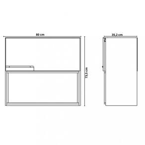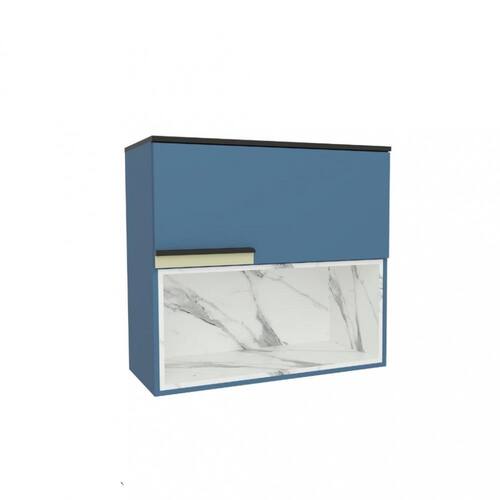 Características: 2 Portas basculantes Nicho Acabamento pintura UV Acompanha cavilhas e parafusos Borda em PVC Dobradiças Caneco 35mm com Amortecimento Estrutura de Fundo MDF 2,5mm Estrutura em MDP 15mm Fixação com minifix Puxadores de Madeira