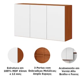 • 1 x Armário Aéreo 100% MDF 3 Portas 120 cm Claire
