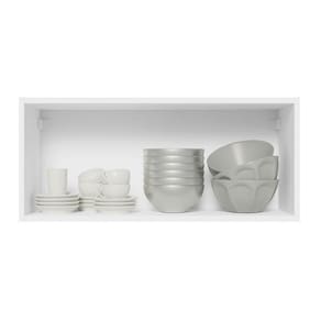 O acabamento da estrutura é branco fosco e o da porta é em branco brilhante. É feito em Pintura Poliéster ecológica com 7 camadas de proteção contra álcool, água e calor.