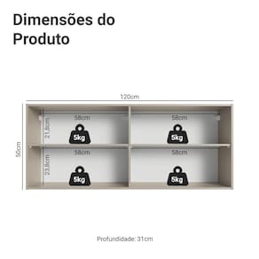 O Armário Aéreo de 120 cm da linha Nice da Madesa é uma solução prática complementar sua cozinha com organização. Com duas portas e quatro nichos internos, ele oferece ótimo espaço para armazenar louças, mantimentos, utensílios e muito mais.