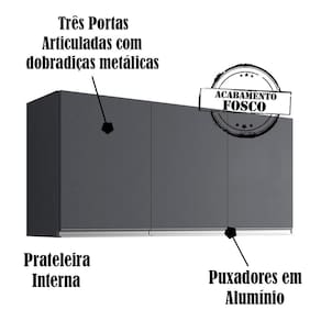 Armário Aereo 120 cm 3 Portas Andreia, é ideal para quem busca qualidade e sofisticação para compor sua cozinha da forma que desejar. Estrutura em MDP de 12 e 15 mm, acabamento em pintura UV (Fosco). Composto por 3 portas articuladas com dobradiças metálicas, uma prateleira interna para organizar seus itens de cozinha, puxadores em alumínio, acompanha kit de ferragens para fixação (verificar riscos de perfurações). Este armário é um módulo avulso da composição Cozinha Modulada Andreia, você pode adquirir outras peças dessa composição que são vendidas separadamente no nosso site. Produzido com controle de qualidade e com excelente acabamento. Este móvel chegará na sua casa separado em 1 volume.