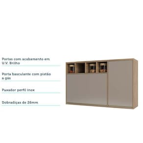 Armário Aéreo 120 Cm 1 Porta De Abrir 1 Porta Basculante E Nicho Superior Mel Luciane Móveis Vanilla Com Graff