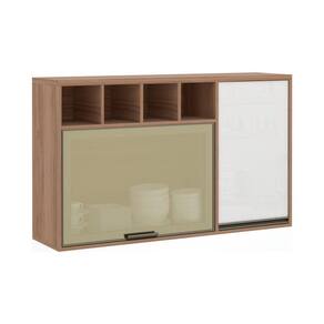 Armário Aéreo 120cm 1 Porta De Abrir 1 Porta Basculante Vidro Reflecta E Nicho Mel Luciane Móveis Vanilla Com Branco