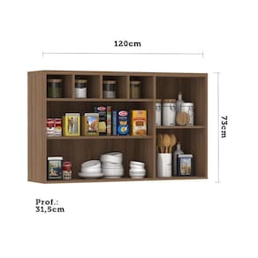 Armário Aéreo 120 cm 1 Porta de abrir 1 Porta Basculante com Vidro Reflecta e Nicho Superior Mel Luciane Móveis O Armário Aéreo com 120 cm Mel foi desenvolvido aliando beleza e praticidade ao seu ambiente. Conta com 1 porta de abrir, 1 porta basculante com pistão a gás 80N e vidro reflecta bronze, 2 prateleiras interna, puxador em alumínio gola. Acompanha sistema para fixação na parede.