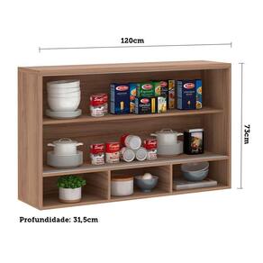 Informações Complementares: Porta Basculante com Pistão à Gás 60N. Prateleira suporta 6kg, Base 10kg e nichos máximo 2kg. Distribua uniformemente os objetos.