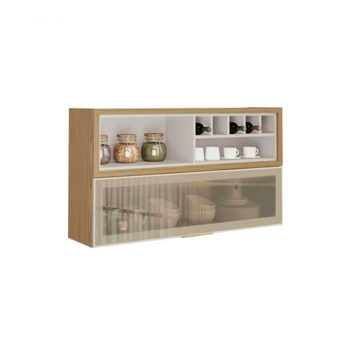 Armário Aéreo 120cm 1 Porta Horizontal Vidro E Nicho Adega New Porto - Itatiaia Freijó-off White
