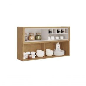 Armário Aéreo 120cm 1 Porta Horizontal Vidro E Nicho Adega New Porto - Itatiaia Freijó/off White