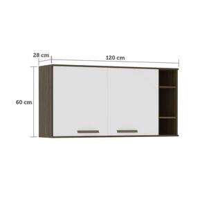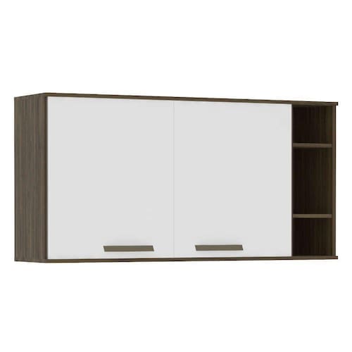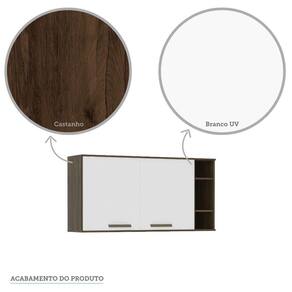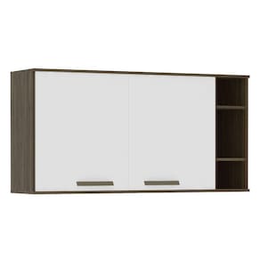 Armário Aéreo 120cm 2 Portas 1 Prateleira Com Nicho Lateral Sara Luciane Móveis Castanho Uv Touch Com Branco Uv