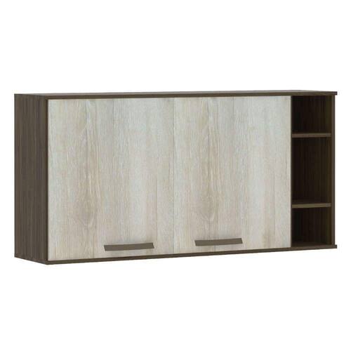Armário Aéreo 120cm 2 Portas 1 Prateleira Com Nicho Lateral Sara Luciane Móveis Castanho Com Legno Crema