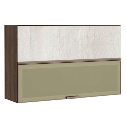 Armário Aéreo 120cm 2 Portas Basculantes Misto com Vidro Reflecta Bronze Jade Luciane Móveis - Bege Claro