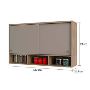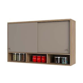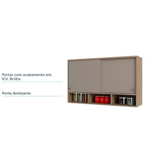 Armário Aéreo 120 Cm 2 Portas De Correr E Nicho Inferior Mel Luciane Móveis Vanilla Com Graff