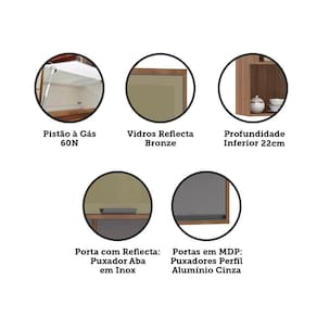 Características: Estrutura: 100 MDP Acabamento do Corpo/Caixaria: Vanilla Pintura UV Acabamento das Portas/Frontal: 2 Portas Cinza Puro BP e 1 Porta com Moldura em Alumínio Cinza e Vidro Reflecta Bronze Quantidade de Portas: 3 Tipo de Dobradiças: Metálica 26mm Tipo de Puxador: Porta com reflecta: Puxador Aba em Inox / Portas em MDP: Puxadores Perfil Alumínio Cinza Sistema de Montagem: Cavilhas, Parafusos e Minifix Itens Inclusos: 1 Armário Aéreo, kit ferragens e manual de montagem Garantia: 3 meses