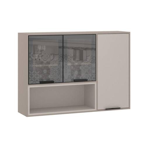 Armário Aéreo 120cm 3 Portas Com Vidro Reflecta Stylo Luciane Móveis Cinammon/beige Desenvolvida com materiais de excelencia, a Cozinha Stylo oferece excelente distribuicao de espaco interno. E estruturada em 100 MDP e possui dobradicas slow motion com amortecedor incorporado para fechamento suave das portas. Conta com puxadores tipo aste em Aluminio Preto dando um toque especial de classe e elegancia. Armario Aereo 120cm 3 Portas com Vidro Reflecta Stylo Luciane Moveis