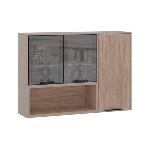 Armário Aéreo 120cm 3 Portas com Vidro Reflecta Stylo Luciane Móveis - Marrom Escuro