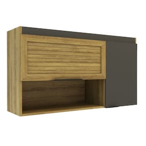 Armário Aéreo 120cm com 2 Portas e 1 Nicho 2305v Porta Veneziana Mel/Grafite - Marrom