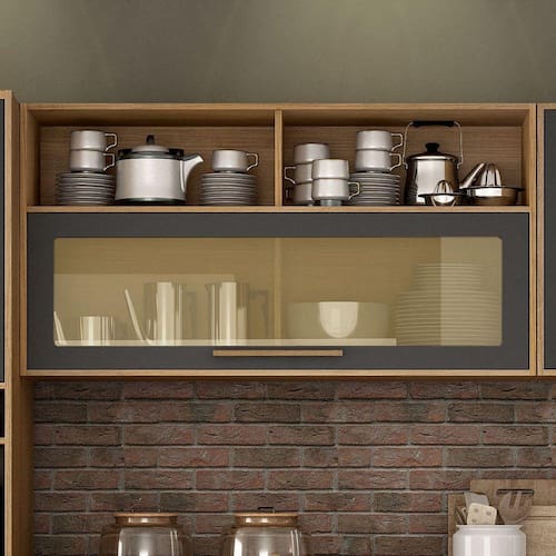 Dono de um visual simples e charmoso, o Armário Aéreo Salvador vai garantir que a arrumação da sua cozinha seja completa, enquanto a estrutura suspensa cede lugar logo abaixo para mais móveis ocuparem o cômodo. Por dentro, conta com compartimentos que recebem copos, xícaras, pratos e demais utensílios domésticos pertinentes ao seu espaço gourmet. Já por fora, a cor e a estrutura se unem em um combo primoroso para a decoração, sem contar que a rotina fica muito mais descomplicada porque ele mantém objetos importantes sempre por perto. Acabamento da Porta: Pintura UV Acabamento da Prateleira: Pintura UV Ambiente Principal: Cozinha Complexidade da Montagem: Média: pode ser montado por mais de uma pessoa e/ou necessite de maior conhecimento para montagem Cor: Cinamomo/Grafite Cor do Produto: Cinamomo/Grafite Escala de Brilho: Fosco Escala de Brilho da Porta: Fosco Escala de Brilho da Prateleira: Fosco Itens Inclusos: 1 Armário, Kit Ferragens e Manual de Montagem Manual de Montagem e Instalação: https://cdn2.madeiramadeira.com.br/atributo/valdemoveis/1234578-esquema-de-montagem-areo-1200-salvador.pdf Material da Dobradiça/Corrediça da Porta: Metálica Material da Porta: MDP Material da Prateleira: MDP Material do Puxador da Porta: MDF Material Principal: MDP Necessita Montagem: Sim Origem do Produto: Nacional Peso: 24 Peso Máximo por Prateleira: 10 Possui Espelho: Não Possui Possui Pés: Não Possui Portas: 01 Possui Prateleiras: 01 Recomendações de Uso, Manutenção e Limpeza: Limpar com pano macio e levemente umedecido. Não utilizar solventes a base e de inflamáveis. Não utilizar produtos abrasivos. Sapatas Niveladoras: Não Sistema de Montagem: Parafusos. Suporta Até (kg): 20 Tipo de Dobradiça/Corrediça da Porta: 35 mm Tipo de Porta: Basculante Tipo de Puxador da Porta: Externo
