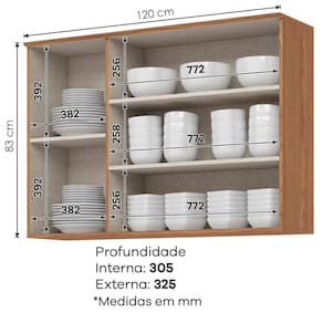 Armario Aereo 2 Portas 120 Cm Mdp Requinte C631 Nature Henn Nature