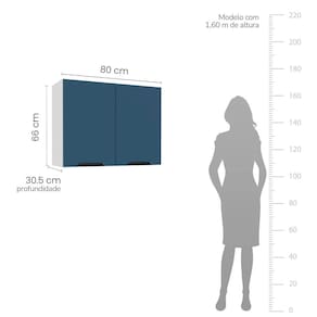 Armário Aéreo 2 Portas 80cm Meena Politorno Móveis - Azul | Marinho