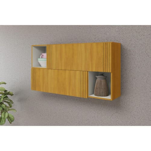 Se você preza pelas suas panelas, vai se apaixonar pelo Armário Aéreo Jade. Ele conta com 2 nichos decorativos e portas basculante com pistões a gás. Ideal para organizar a cozinha, ele deixa tudo em ordem e deixa a hora de cozinha ainda mais rápida e prática. Feito com materiais de resistência, ele promete uma vida útil mais duradoura.