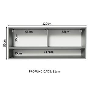 Medidas totais: - 50 cm de altura - 120 cm de largura - 31 cm de profundidade