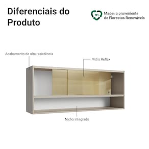 O Armário Aéreo de 120 cm da linha Nice da Madesa é perfeito para quem busca funcionalidade sem abrir mão da elegância na cozinha. Ele conta com duas portas de correr com vidro Reflex, que oferecem um visual moderno, além de um nicho aberto, ideal para deixar itens à vista e de fácil acesso.