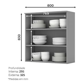 Armário Aéreo 2 Portas de Vidro 80 cm Nova York Cinza – Henn