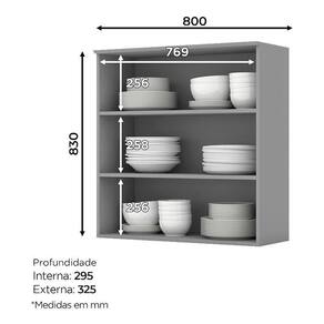 Armário Aéreo 2 Portas de Vidro com Balcão Forno de Embutir 80cm Americana Cinza - Henn