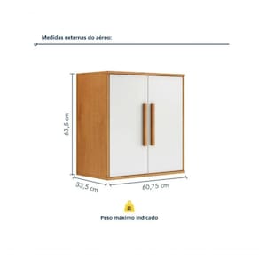 Se você precisa de mais organização na cozinha sem ocupar espaço, esse armário aéreo de 2 portas é a escolha certa! Compacto por fora e espaçoso por dentro, ele vem com prateleira interna para deixar tudo no lugar, desde pratos até aquele potinho que some do nada. A cor clean combina com qualquer decoração, trazendo um toque moderno e leve para o ambiente. Prático, bonito e funcional, do jeito que a sua cozinha merece! Não perca tempo e garanta o seu agora!Como combiná-la com a decoração para cozinha? Por ter cores versáteis, elas combinam com qualquer esté usá-lo em outro ambiente? Claro, basta usar a criatividade e ele será útil em vários ambientes.Medidas do ProdutoAltura: 0,63cmLargura: 0,60cmProfundidade: 0,33cmTodos os produtos têm três (03) meses de garantia fornecida pelo fornecedor- As imagens são meramente ilustrativas, os objetos que ambientam as fotos não acompanham o produto.- Pode haver alguma diferença de tonalidade entre a foto e o produto, devido ao tratamento de imagens e a calibração do monitor- A é realizada por transportadora, não nos responsabilizamos, no ato da por desmontagens, subir escadas/elevadores ou por guincho para apartamentos- Eventuais despesas são de responsabilidade do cliente- Confira as dimensões dos volumes e certifique-se de que passará normalmente por supostos elevadores, portas, escadas ou corredores- Ao receber a mercadoria, verifique as condições da embalagem, caso haja alguma , com nosso - Nossa empresa não se responsabiliza pela montagem dos produtos, mas todos os produtos possuem manual de montagem. Recomendamos que a montagem seja feita por de sua confiança.