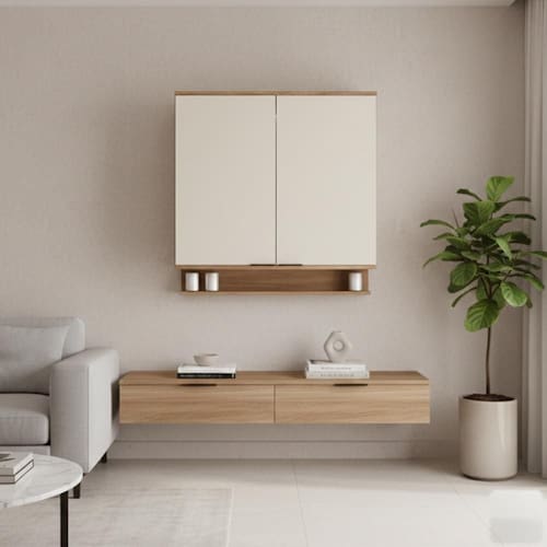 Armário Aéreo 2 Portas Miami Carraro Freijó com Off White Sala de Estar - Freijó | Off White