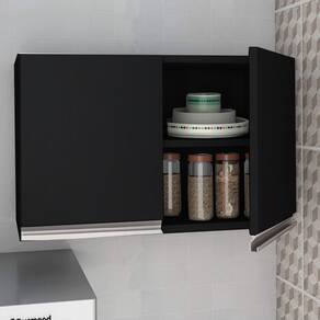 Armário Aéreo 2 Portas Preto Em Mdf