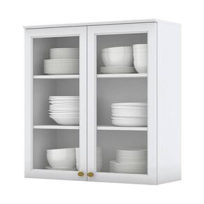 Armário Aéreo 2 Portas Vidro 80cm Americana - Móveis Henn Os módulos da Cozinha Modulada Americana é uma linha clássica e atemporal, pensada para transformar esse ambiente no novo cantinho preferido do seu lar. Produzida 100% em MDF, na cor branco, uma pintura UV fosca, todas as portas e gavetas contam com usinagem em baixo relevo e os puxadores em zamac ouro velho garantem um charme extra a qualquer ambiente.