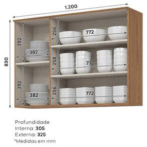 Armário Aéreo 3 Portas 120 cm Requinte Nature Henn