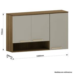 O Armário Aéreo Isis Luciane de 120 cm, com 3 portas e nicho, é perfeito para atender todas as necessidades de sua cozinha. Oferece amplo espaço para organizar sua boneca e se destaca pelo design inovador. Conta com 1 nicho, 3 portas, 3 prateleiras, dobradiças de 35 mm com amortecimento, estrutura em MDP e puxadores em plástico. Suporta até 17kg.