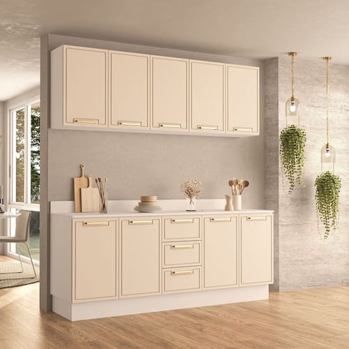 O Armário Aéreo Amara da Politorno Móveis, com 3 portas, é perfeito para quem busca mais espaço e organização na cozinha sem comprometer a circulação do ambiente. Fabricado em MDP/MDF, ele garante resistência e durabilidade, enquanto o acabamento usinado confere um toque moderno e sofisticado. Seu revestimento em FF/UV protege contra umidade e facilita a limpeza, tornando o dia a dia mais prático. Os puxadores em alumínio agregam elegância e robustez ao design. Com 66 cm de altura, 120 cm de largura e 30,5 cm de profundidade, esse armário aéreo oferece amplo espaço interno para armazenar louças, utensílios e mantimentos, unindo funcionalidade e estilo para compor cozinhas bem organizadas e sofisticadas. Acabamento da Prateleira: Pintura UV Escala de Brilho da Prateleira: Semi-Fosco Acabamento da Porta: Pintura UV Escala de Brilho da Porta: Semi-Fosco Material do Puxador da Porta: Alumínio Ambiente Principal: Cozinha codigo_ean: 7900288058355 Complexidade da Montagem: Média: pode ser montado por mais de uma pessoa e/ou necessite de maior conhecimento para montagem Cor: Branco/Creme Cor do Produto: Branco/Creme Cor Interna: Branco Escala de Brilho: Semi-Fosco Itens Inclusos: 1 Armário Aéreo Desmontado, 1 Kit de Ferragens,1 Manual de Montagem e 1 Termo de Garantia Linha ou Coleção: Amara Manual de Especificação Técnica: https://product-hub-prd.madeiramadeira.com.br/977195/documents/a563e4b3-f036-40f8-8efe-5216f203582b2673438622417388733926333.pdf Manual de Montagem e Instalação: https://product-hub-prd.madeiramadeira.com.br/977195/documents/21458387-fb69-4512-aafa-d01eb951ded72673437622417388733912388.pdf Marca: Politorno Material da Dobradiça/Corrediça da Porta: Metálica Material da Porta: MDF/MDP Material da Prateleira: MDF/MDP Necessita Montagem: Sim Origem do Produto: Nacional Peso: 20,29 kg Peso Máximo por Prateleira: 5 kg Possui Espelho: Não Possui Possui Pés: Não Possui Portas: Sim Possui Prateleiras: Sim Produto Montado: Sim Recomendações de Uso, Manutenção e Limpeza: Utilize um pano macio umedecido com água e sabão neutro, seguido de pano seco. Não utilize produtos químicos ou abrasivos para limpeza, pois estes danificam o revestimento do móvel. Sapatas Niveladoras: Não Sistema de Montagem: Acompanha bucha e parafuso para fixação na parede Suporta Até (kg): 10 kg Tipo de Dobradiça/Corrediça da Porta: Soft close Tipo de Puxador da Porta: Externo undefined: 977194