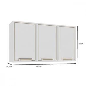 Armário Aéreo 3 Portas Amara Politorno Moveis O Armário Aéreo Amara da Politorno Móveis, com 3 portas, é perfeito para quem busca mais espaço e organização na cozinha sem comprometer a circulação do ambiente. Fabricado em MDP/MDF, ele garante resistência e durabilidade, enquanto o acabamento usinado confere um toque moderno e sofisticado. Seu revestimento em FF/UV protege contra umidade e facilita a limpeza, tornando o dia a dia mais prático. Os puxadores em alumínio agregam elegância e robustez ao design. Com 66 cm de altura, 120 cm de largura e 30,5 cm de profundidade, esse armário aéreo oferece amplo espaço interno para armazenar louças, utensílios e mantimentos, unindo funcionalidade e estilo para compor cozinhas bem organizadas e sofisticadas.