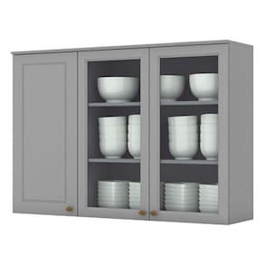 Armário Aéreo 3 Portas com Vidro 120 cm Nova York Cinza Henn