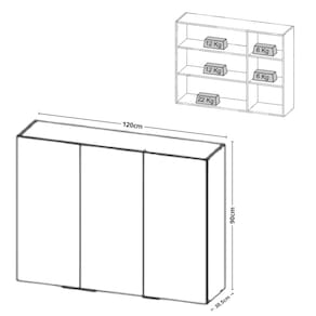 Dimensões: Altura: 90 cm Largura: 120 cm Profundidade: 30,5 cm Peso: 33,00 kg