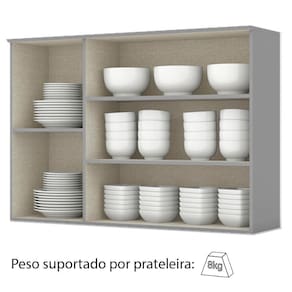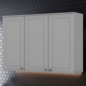 Armário Aéreo de 3 Portas 120 cm cozinha provençal seu conceito é inspirado nas clássicas cozinhas estilo americano. Estrutura 100% MDF de 15mm (fundo em MDF de 3mm), portas com dobradiças metálicas 35 mm com amortecimento e fechamento suave, frentes com usinagem em baixo relevo. A pintura UV texturizada proporciona um acabamento sofisticado e fácil de limpar, enquanto os puxadores em Metal Zamac agregam um toque de elegância e resistência. Sua interna conta com 3 prateleiras espaçosas, cada uma suportando até 8 kg, permitindo a organização de louças, mantimentos e utensílios com segurança. Este móvel chegará na sua casa separado em 01 volume.