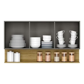 Armário 3 Portas Com Nicho Inferior 1,20 Line Cor ;Cinza Gris Freijó Kits Paraná