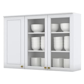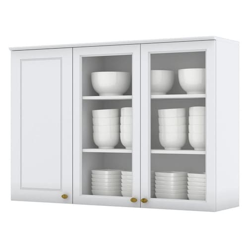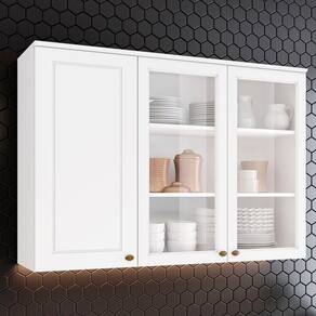 Armário Aéreo 3 Portas com Vidro de 120 cm, cozinha provençal seu conceito é inspirado nas clássicas cozinhas estilo americano. Estrutura 100% MDF de 15mm. Conta com 3 portas sendo 2 com vidro, todas equipadas com dobradiças Metálicas 35mm com Amortecimento para um fechamento suave, frentes com usinagem em baixo relevo. Puxador metal zamac dando estilo e elegância para ao móvel. Conta com 3 prateleiras cada uma suportando até 8kg. A pintura UV texturizada proporciona um acabamento sofisticado e fácil de limpar, com espaço amplo para colocar seus mantimentos e utensílios com facilidade. Este móvel chegará na sua casa separado em 01 volume.