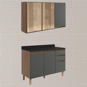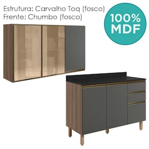 Conjunto de Armário Aéreo 3 Portas e Balcão com Tampo para cozinha, funcional e moderno, ideal para composições que otimizam o espaço com elegância. Fabricado em MDF, com estrutura e tampo de 15mm, forro de fundo de 3mm e acabamento em pintura UV (fosco ou brilho). O Conjunto é composto por 1 armário aéreo com 2 portas de vidro reflecta e 1 em MDF com dobradiças de 35mm com amortecedor, que garantem fechamento suave e silencioso, além de puxadores em perfil de alumínio e 2 prateleiras internas. O Balcão com tampo 15mm que conta com 3 gavetas com corrediças telescópicas, 1 prateleira interna e 2 portas com dobradiças de 35mm com amortecedores. Os 5 pés possuem altura de 15,5cm com regulagem adicional de 1,5cm, garantindo estabilidade em qualquer piso. Estes móveis chegarão em sua casa separados em 05 volumes.