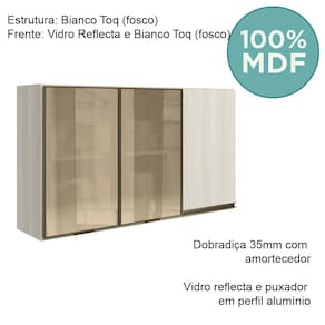 Armário Aéreo para cozinha desenvolvido para composições modernas e funcionais. Fabricado 100% em MDF, com estrutura de 15 mm e forro de fundo de 3 mm. Além disso conta com 2 portas de vidro reflecta e 1 em MDF com dobradiças de 35mm com amortecedor, que garantem fechamento suave e silencioso, e 1 prateleira interna. Os puxadores em perfil de alumínio completam o produto com um visual funcional e moderno, enquanto o vidro reflecta traz um toque sofisticado e reflexivo. Este móvel chegará em sua casa separado em 02 volumes.