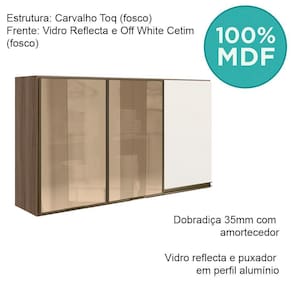 Armario Aereo 3p Vid Mdf 120cm Kali 1219764 Carvalho Toq Off White Cetim Nicioli Carvalho Toq Off White Cetim