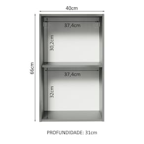 O Armário Aéreo de 40 cm da linha Nice da Madesa possui uma porta e bom espaço interno para utensílios, louças e mantimentos.