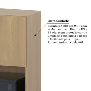 Informação Complementar Suporta até: 9kg na prateleira e 15kg na base. Distribua uniformemente os objetos. Espaço para Forno ou Micro-ondas. ATENÇÃO: Na utilização de FORNO ELÉTRICO/GÁS é obrigatória a retirada do fundo -risco de super aquecimento-. As dimensões máximas do forno devem respeitar a margem de respiro, necessitando folga de 5cm entre forno e laterais do móvel.