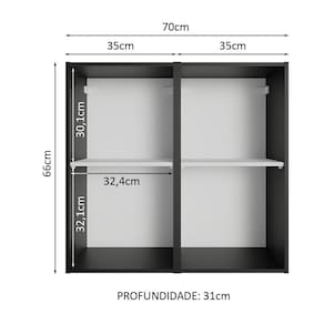 Com 70 cm de largura, o móvel oferece amplo espaço interno para organizar seus utensílios, louças e mantimentos com praticidade. As duas portas facilitam o acesso aos seus itens e o design moderno e elegante complementa a decoração da sua cozinha.